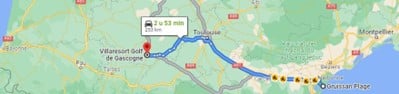 Naar de kust bij Narbonne (Gruissan Plage) is het ongeveer 2 uur en 53 minuten rijden.